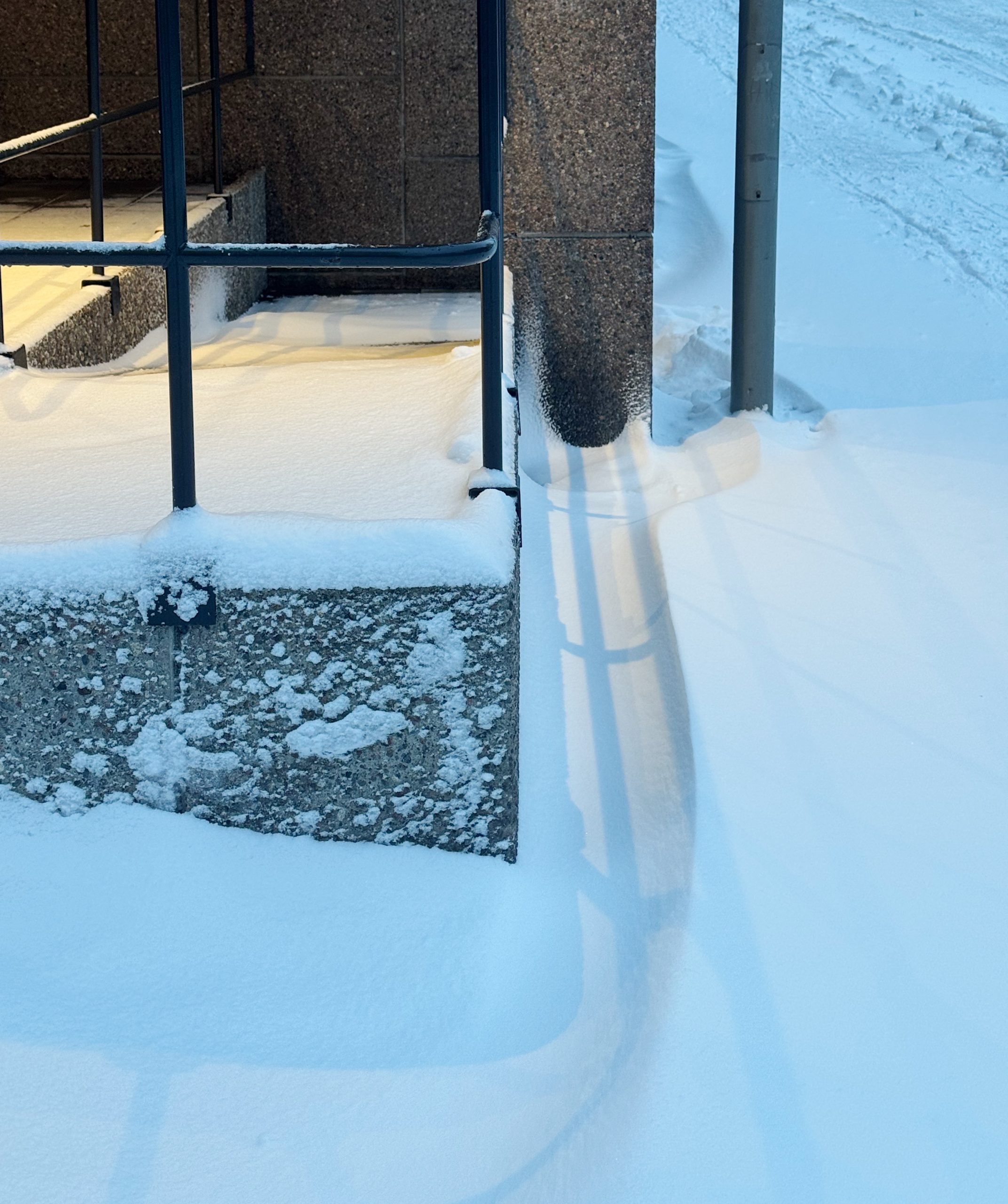 för en dag sen: johan fotograferar snöovädret från vårat hotellrum och pia ser på.