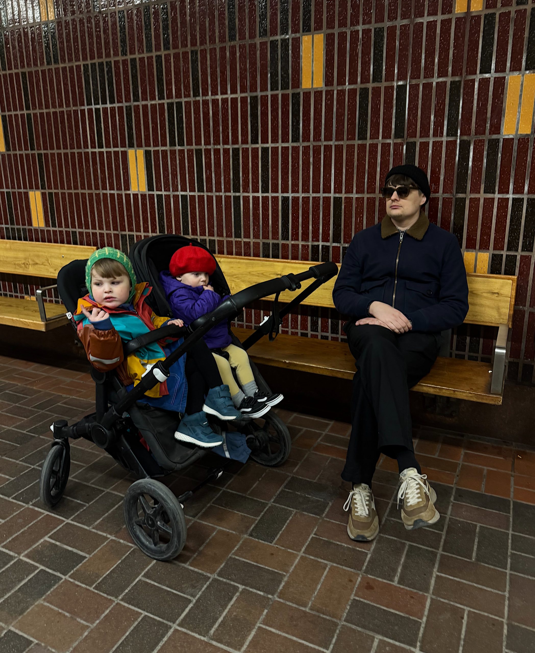 min coola familj. pia valde kjol pga dansuppvisning och ola basker pga stilkänsla. varför johan valde solglasögon vet man inte men svårt att tro att det är pga soligt i tunnelbanan