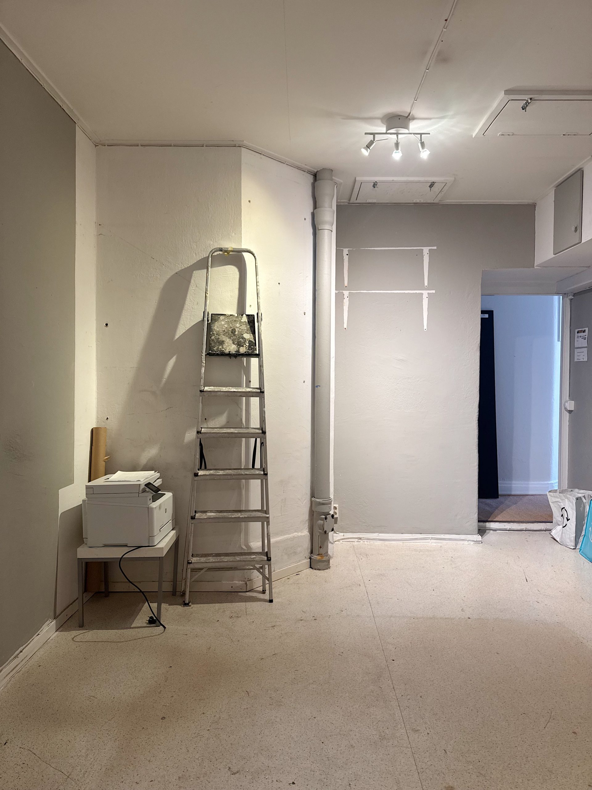 vad är detta undrar ni? det är en plats jag besöker dagligen. det inre rummet på kontoret. och nu är det vårat!!! MITT OCH FLORAS. vi har tidigare hyrt endast våra platser i det yttre rummet mot gatan men har nu alltså tagit över kontraktet för hela lokalen. vi ska måla och göra fint och sätta in en dörr och ett större mötesbord så kontoret blir mer långsiktigt användbart för oss. känns så kul. och lite läskigt men det som inte känns läskigt är inte värt eller hur?