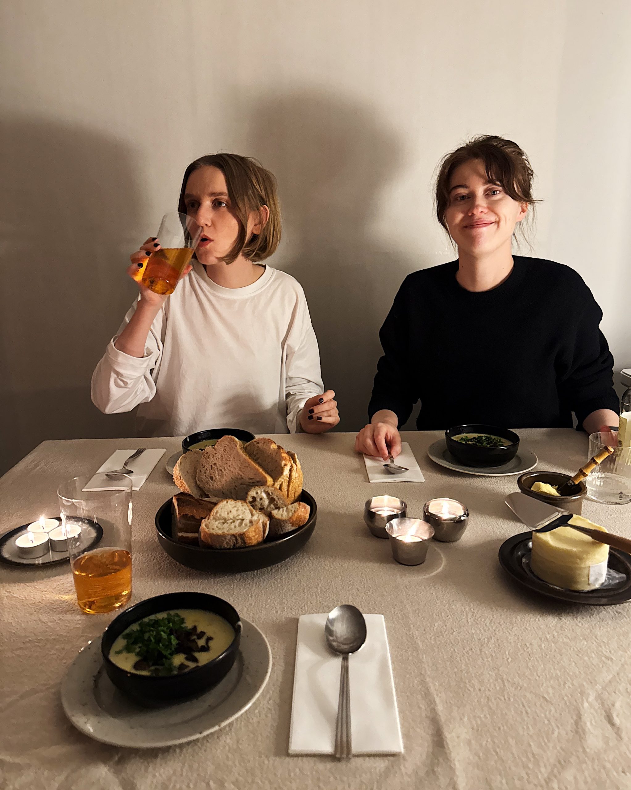 åkte till tallkrogen ikväll! en liten dvärgtax hälsade välkommen i snön genom att kissa på sig av uppspelthet (han har gjort det när han hälsar på mig sen han var valp? varför?). madde och erik har alltså flyttat till hus! och jag och alicia blev bjudna på god potatis och purjolökssoppa av mads.