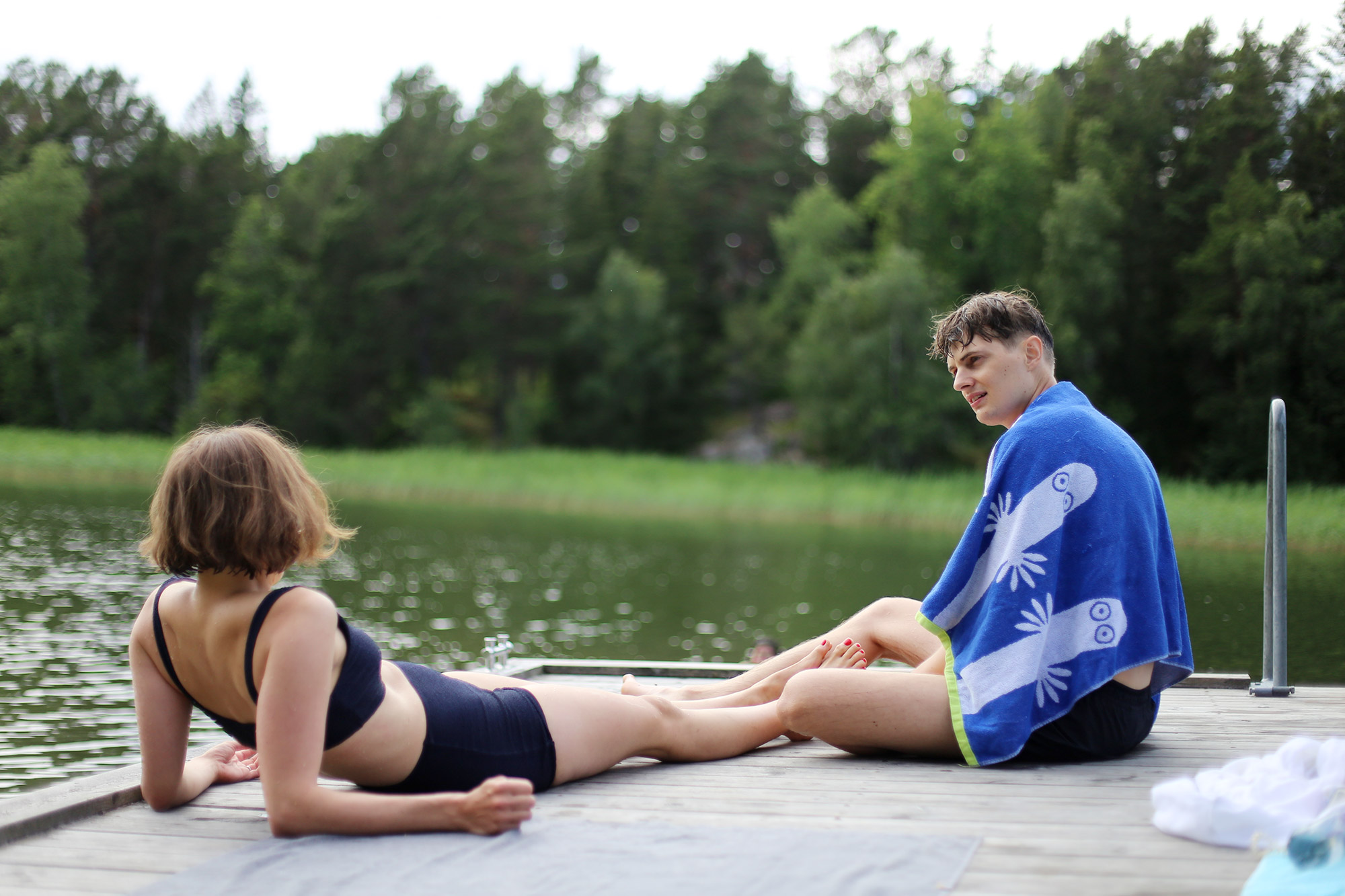 yrsa pushade mig ska du inte ta en springtur det är så skönt du kan springa innan oss när vi går till badet