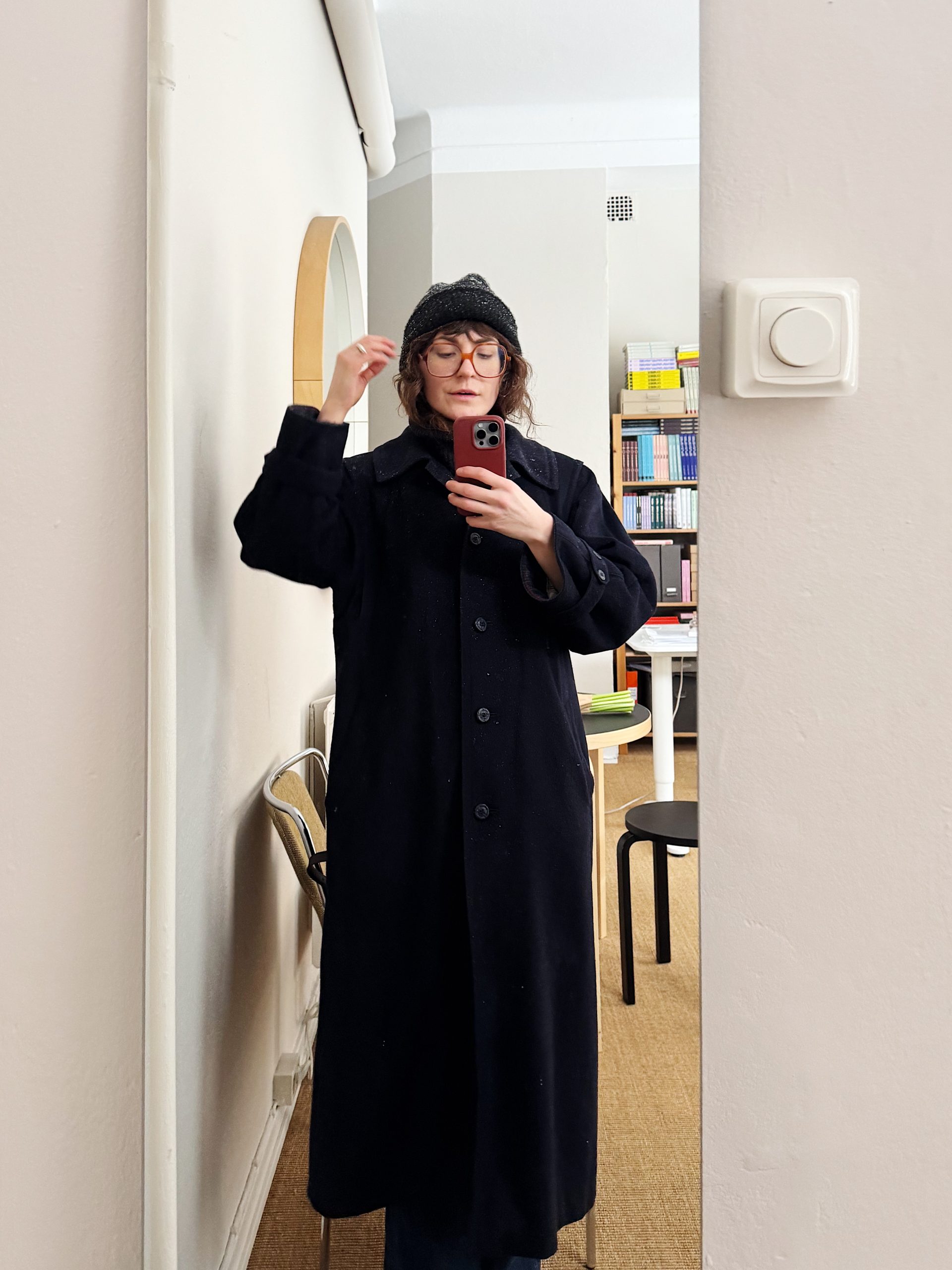 kappan är också marinblå och i ull och flora hittade den till mig på sellpy för typ 200 kr i höstas.