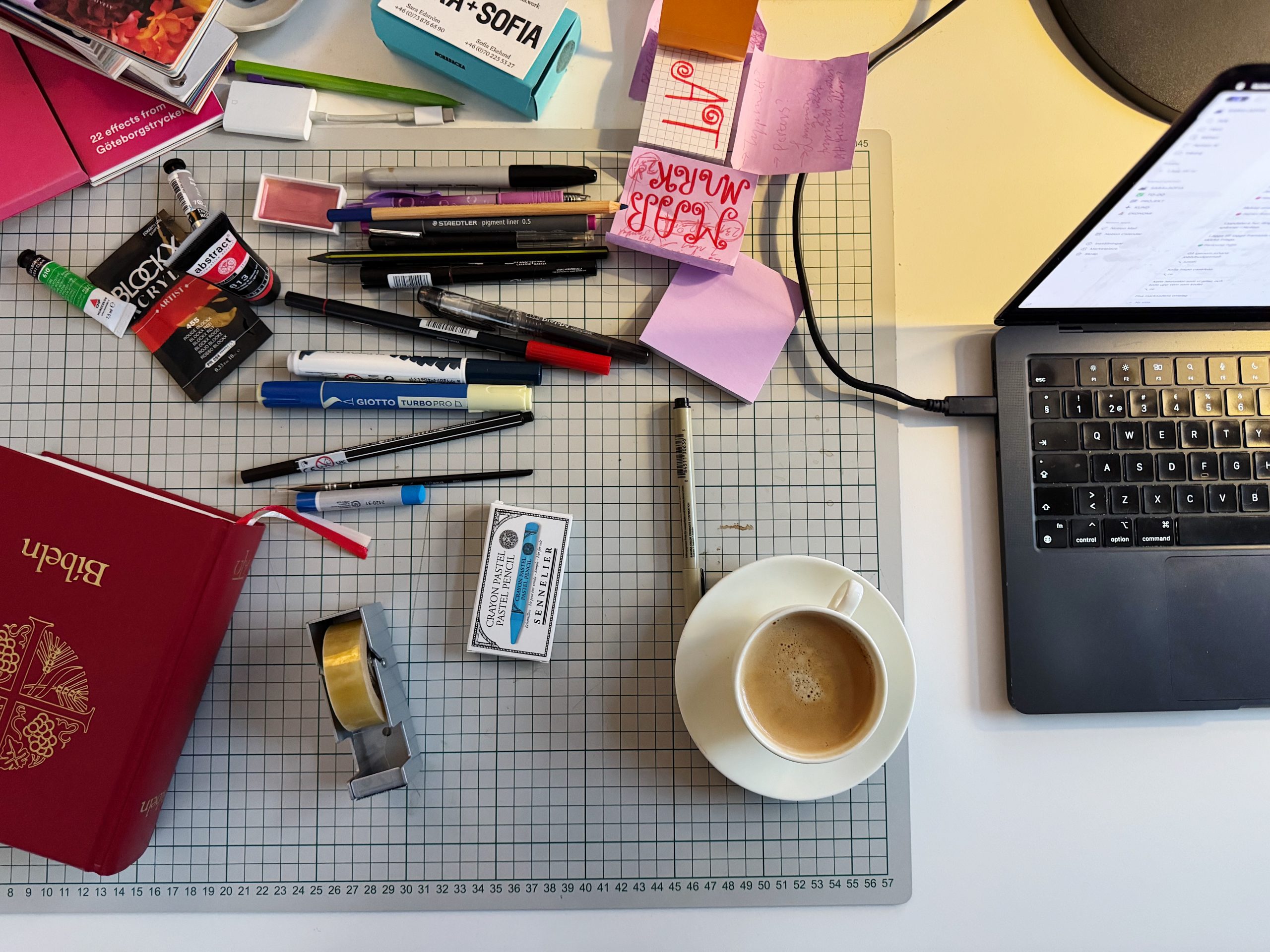 11.20 ett möte och en veckogenomgång med sofia senare. dagens tredje kopp kaffe och redo för ett pass bokomslagsformgivning.