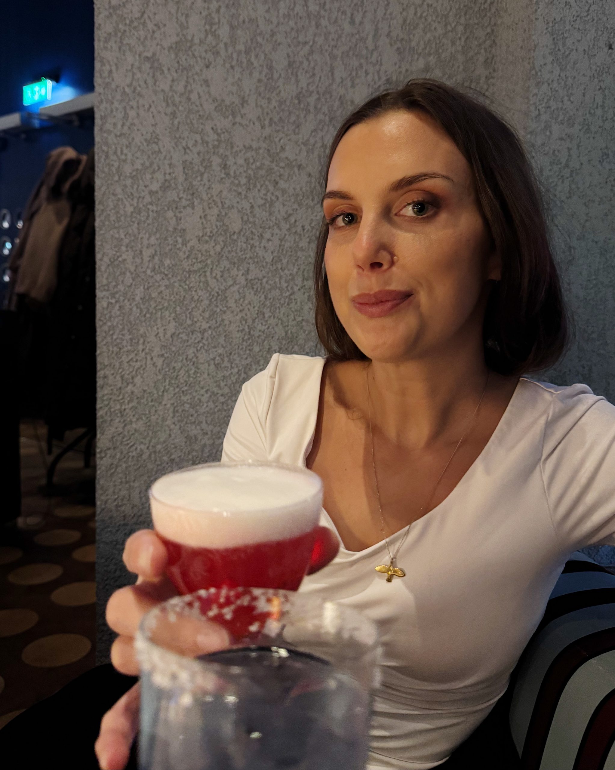 kvällens aktivitet är först ta ut soporna och sen ut och äta middag med alle. linnet skulle också varit med men man måste lyssna på kroppen. så är det. det är gott och mysigt men sån service som får en att känna att man är där på nåder? sånt kan jag inte hantera jag är redan bra på att ursäkta mig i såna sammanhang. men vi dricker drinkar (med fin färg ändå!) och pratar om våra barn och om skeleton. sjuk sport?