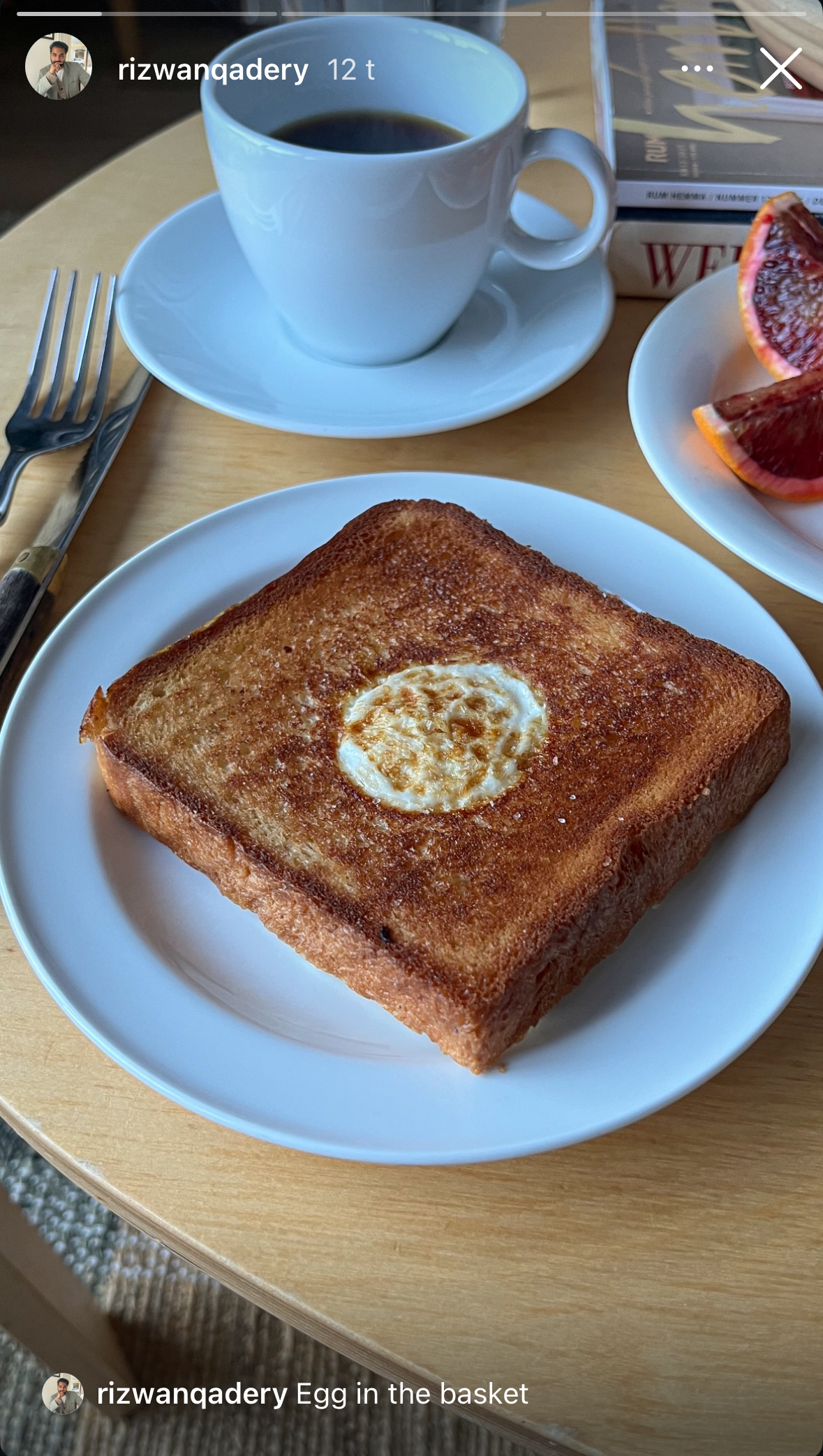 rizwan påminde mig om att denna frukost finns! johan introducerade mig när vi träffades men kallade den toad in a hole. lite mindre elegant än egg in the basket haha