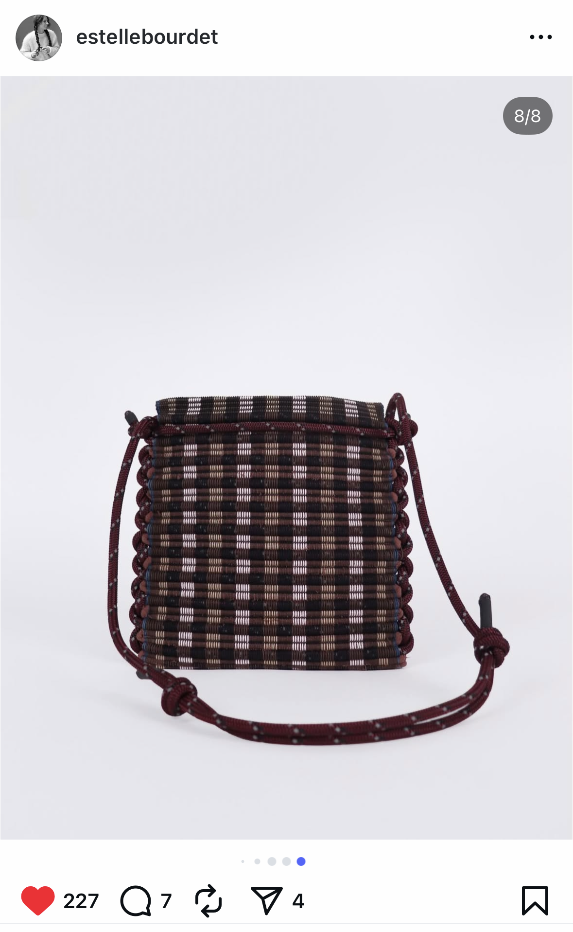 estelle bourdet är textilkonstnär som förutom otroliga bonader och konstverk också ibland väver limited editions av de vackraste handväskorna som finns!!!!! jag köpte en för några år sen och den vackraste sak jag äger.