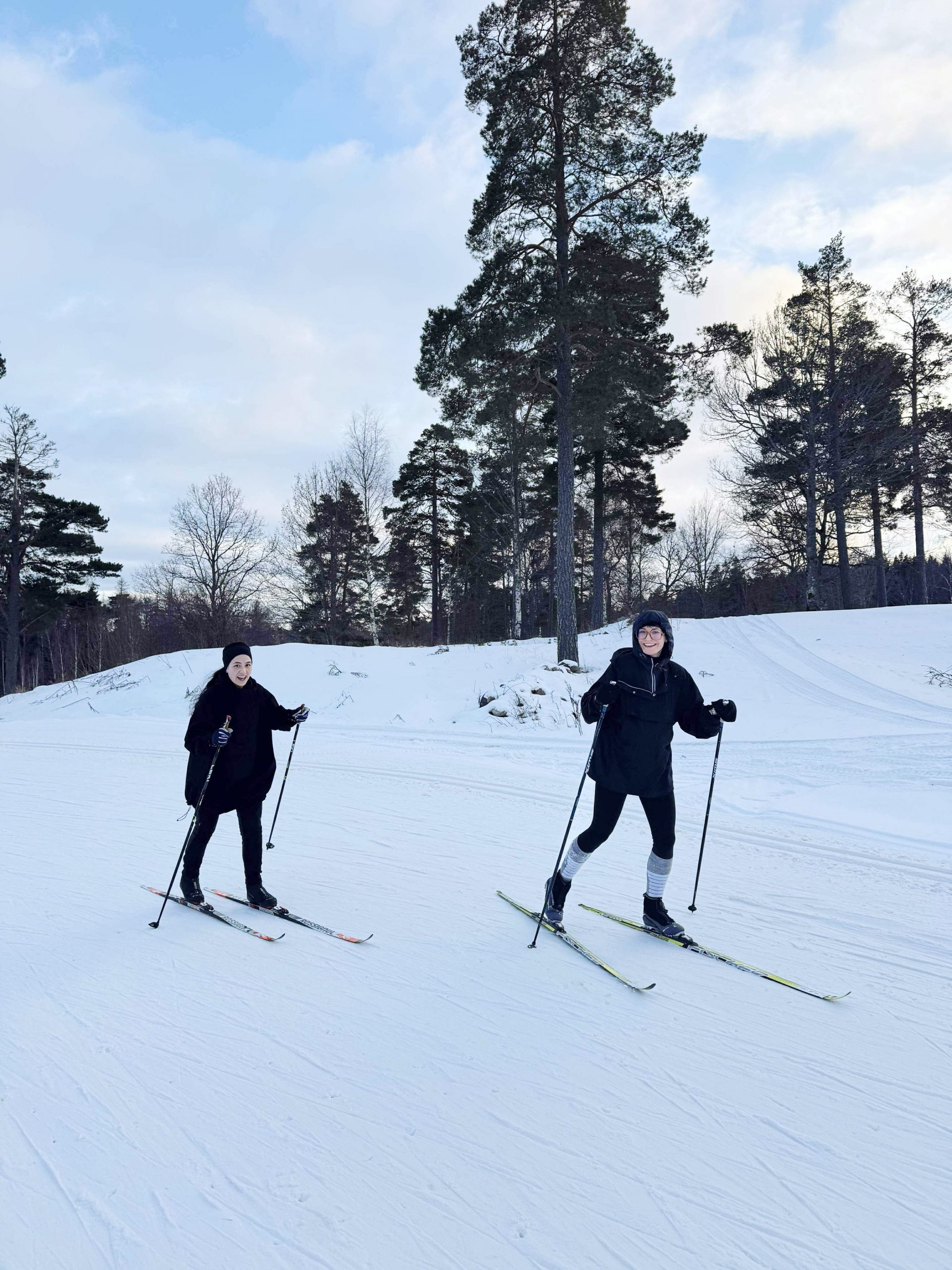 alltså första gången jag körde med längdstavar och inte utförsstavar. vilken grej! vilken hävarm! jag staka staka staka. vi var ute i drygt en timme och körde en mil.