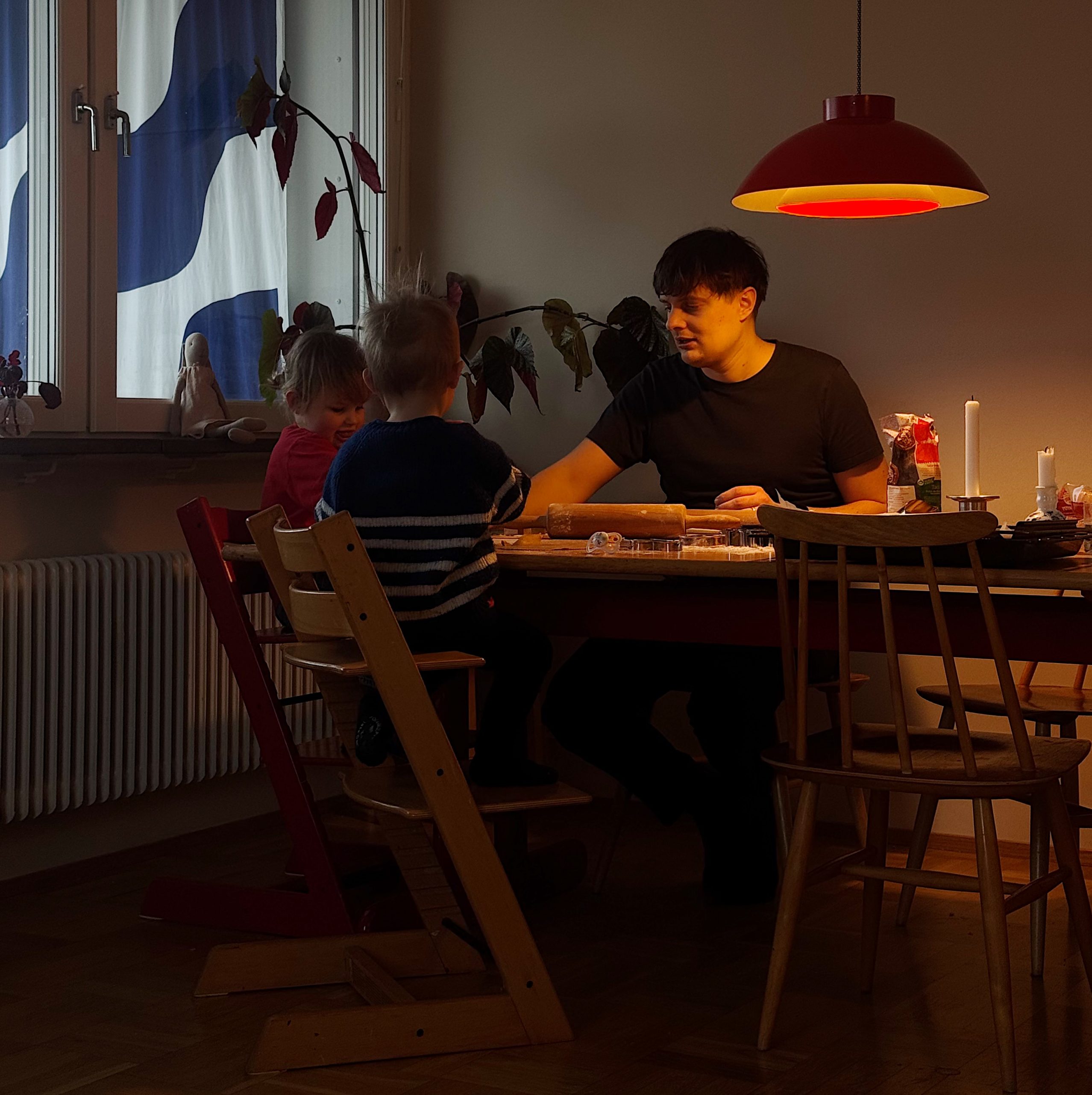 när jag kom hem fick jag vila. jag var bakis från gårkvällens bravader. och låg på soffan och såg på när de bakade pepparkakor. extremt mysigt. om någon undrar hur det går med vårt skidande så var det alltså träning som skulle skett här egentligen. men man får inte bli för satsig för då glömmer man plötsligt de andra delarna i livet som är minst lika viktiga (dvs dricka öl med sina kompisar).