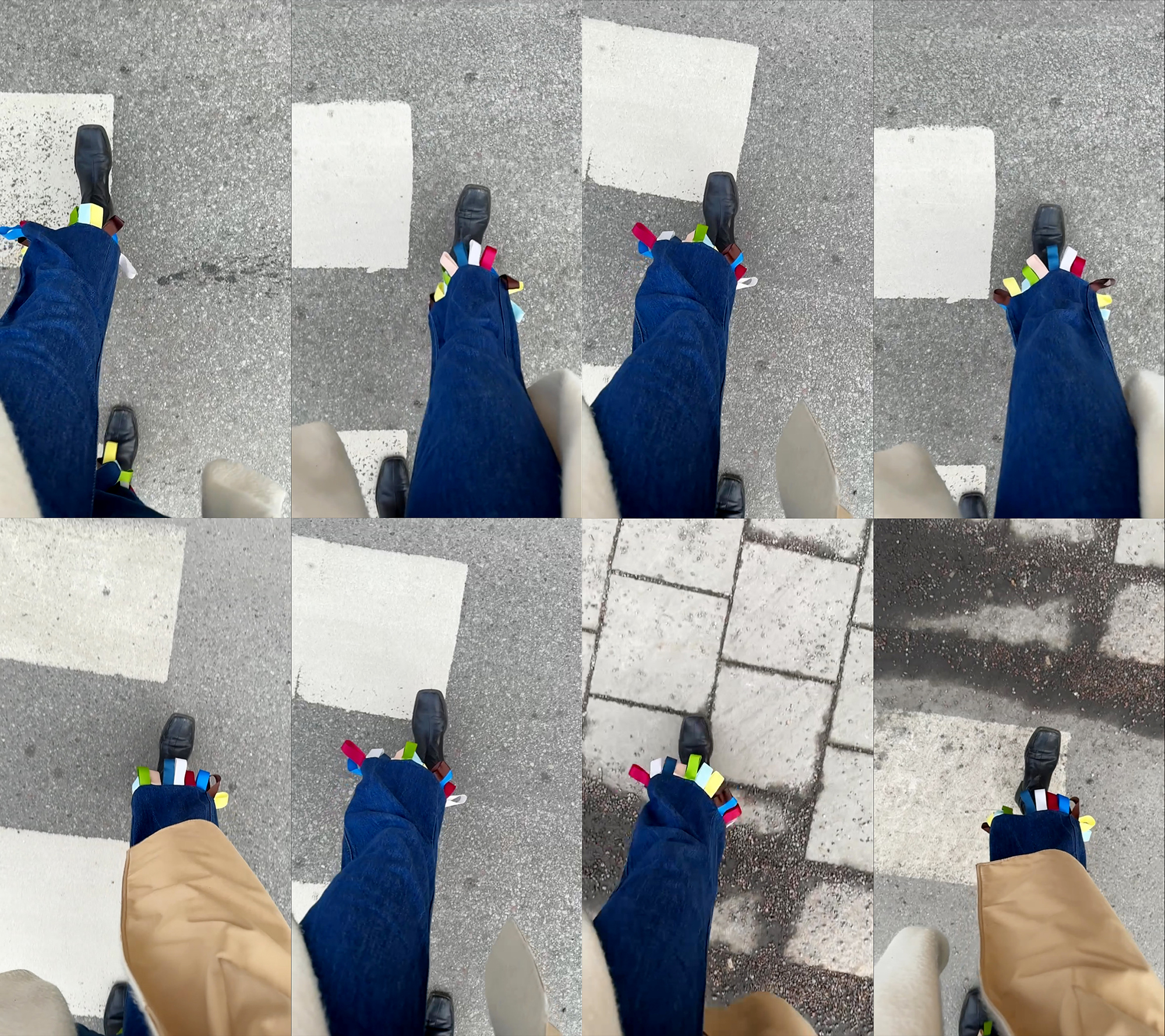 så aktuella är dock inte screenshotsen från den här videon (som är från förra februari då byxorna var nyjorda) men jag kände att de förtjänar att komma med i mitt år av bloggande. jag hittade ett par billiga jeans på vinted och på tradera ett set med tygband och sydde ihop dem (detta var under min föräldraledighet med ola så jag misstänker att någon form av undermedveten inspiration). olika typer av band finns typ på alla loppisar men rekommenderar särskilt stadsmissionen hornsgatans textilavdelning om man har vägarna förbi i stockholm.