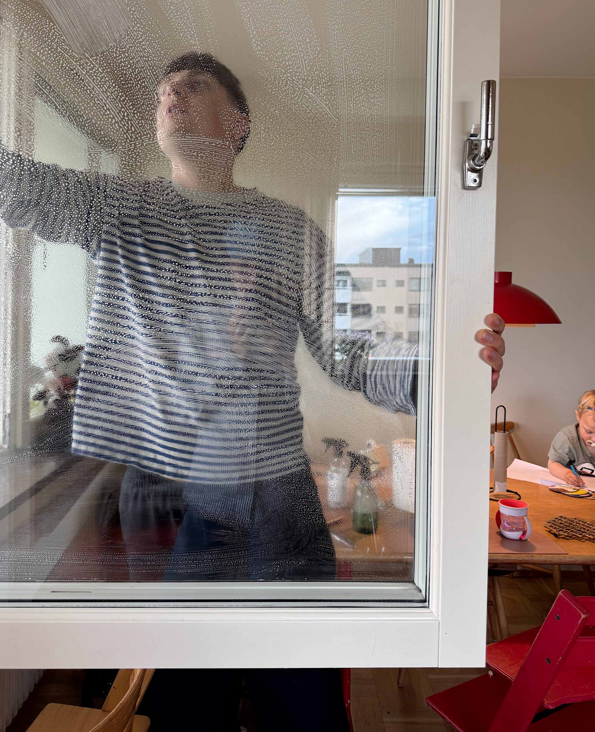 vi kom hem och hanterade det sjukaste break-downet sen jag blev förälder tror jag? tur hade vi att min mamma kom på middag sen och barnen var små änglar som lekte med henne. men med alla dessa förutsättningar. jag undrar: vem tog min man och stoppade in den här fönsterputsande killen med massa energi istället?
