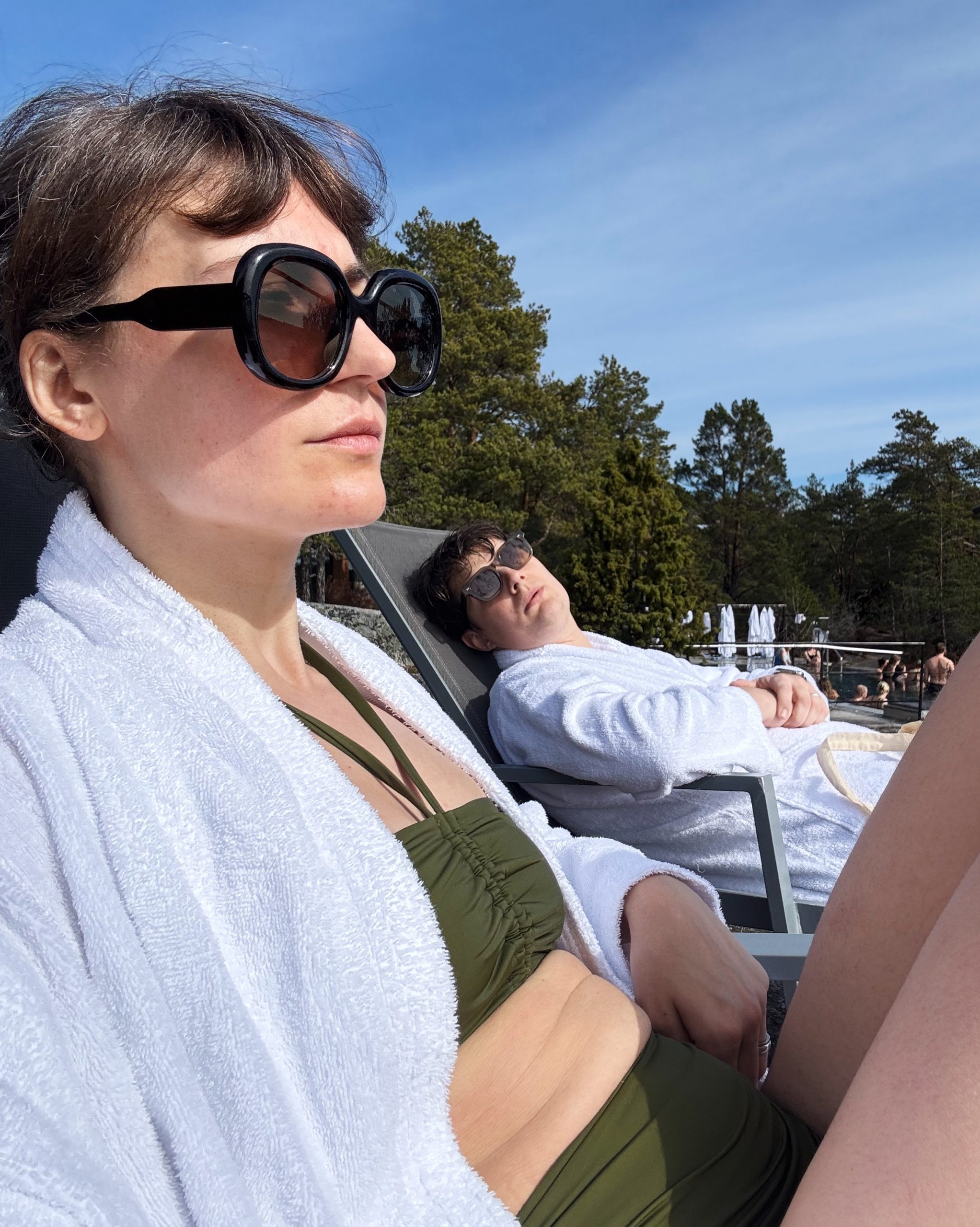 vi inkasserade en bröllopsgåva från tim och sara idag. de plingade på dörren i morse för en dag of fun med barnen och vi fick åka ut till värmdö och basta och bada och gå runt i lånade tofflor och rockar i solen. jag simmade några längder också. en tankelek jag har när jag simmar (dels för att jag blir uttråkad och dels för att hålla räkningen på längderna) är att jag tänker på respektive liv i mitt år. 8. det var då jag gick i tegelhuset man fick börja gå i den större byggnaden på ekebyskolan. vi hade en stor klätterställning utanför entrén närmast vårt klassrum. vi sopade bort gruset tills vi kom ner till den kompakta jorden och vi var arkeologer som hittade skatter. alla ville ha virkade mössor och mandi hade fått brunare skinn och flätor efter något lov. 15. jag och pappa är i en verkstad i stan och han köper mig min röda vespa. målvaktshjälmen fick plats i luckan under sitsen när jag åkte till innebandyträningarna i hammarbacken. 20. jag och johan flyttar hemifrån ihop.