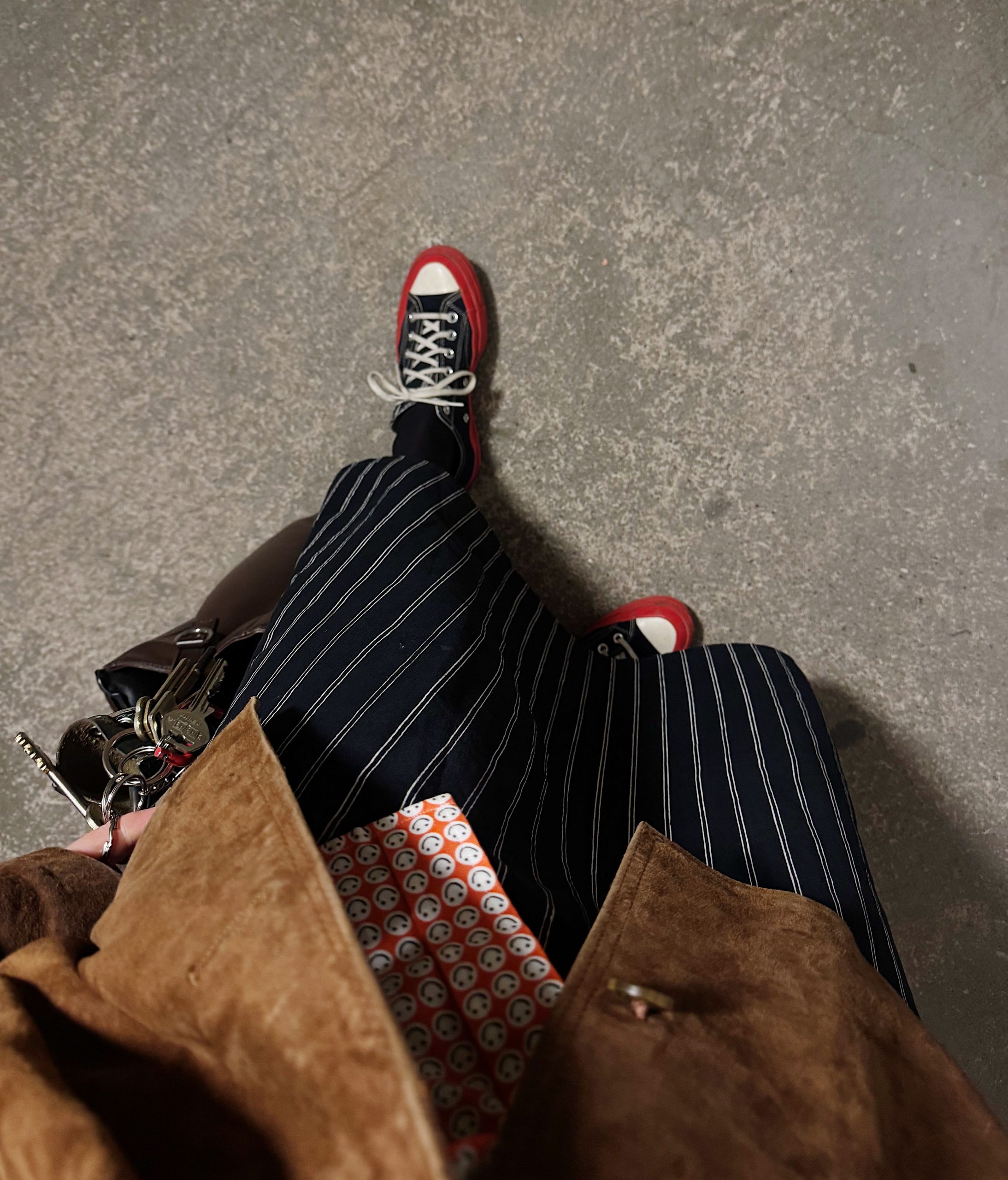 den glada skjortan bar jag till den slitna mockajacka den randiga kjolen och de ständiga skorna.